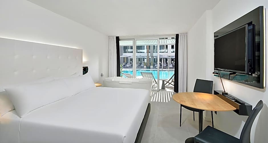 With direct access to the pool area, bathrobe and flat-screen TV.